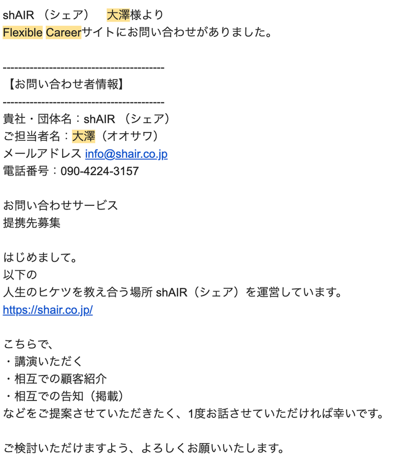 当時、株式会社Piece to Peaceは教える人と学ぶ人のマッチングプラットフォーム「shAIR」を運営しており、大澤のこの連絡がきっかけで、キャリアのイベントに登壇させてもらったことが出会いのきっかけとなりました。