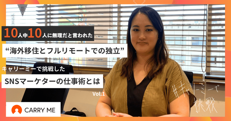 10人中10人に無理だと言われた海外移住とフルリモートでの独立。キャリーミーで挑戦したSNSマーケターの仕事術とは|キャリーミー公式note