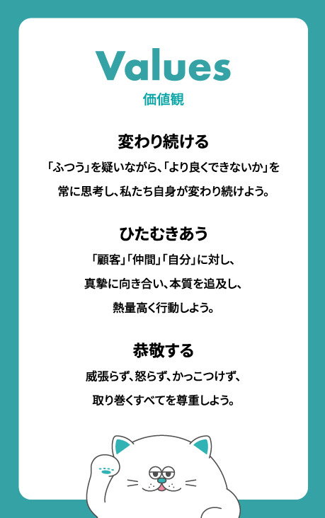 ーこのタイミングで、新たに社内にValuesとして3つの行動指針が発表されました。