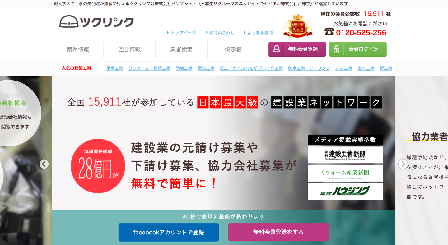 ・『建設業界マッチングの「ツクリンク」8500万円調達』(2017.07.26)