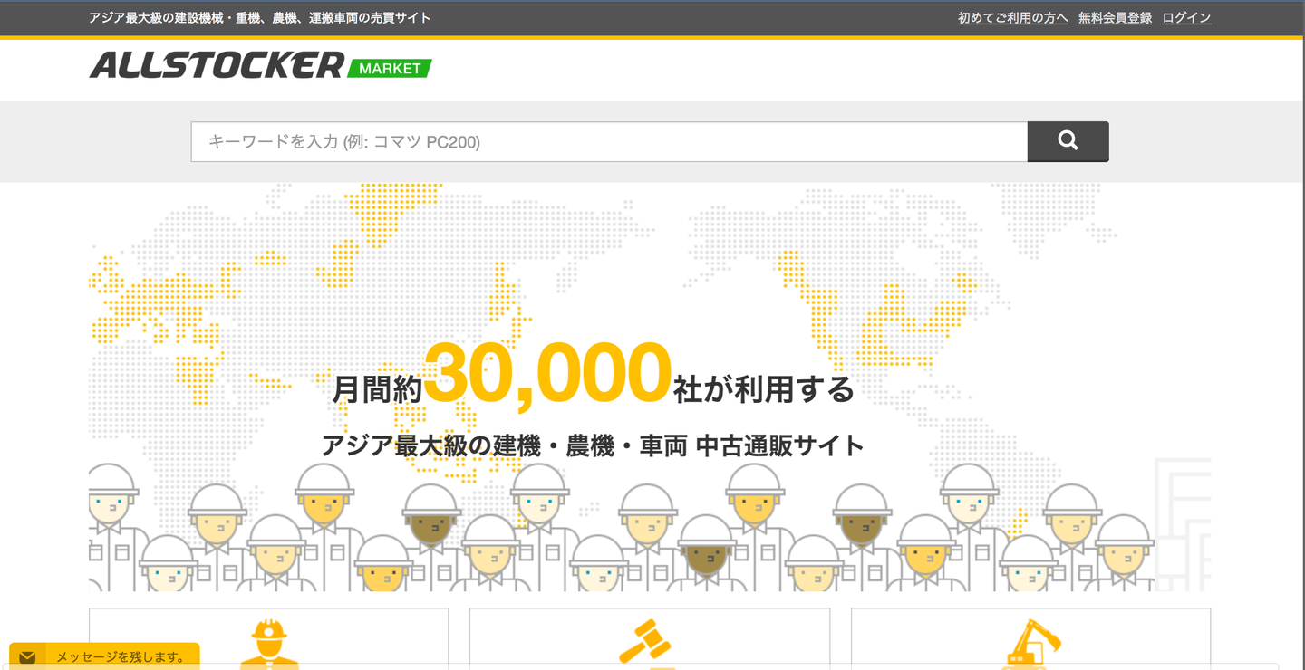 アメリカにおけるIronPlanetの日本版(アジア版)です。日本の建機はアジア新興国で非常に人気があり、同じコマツ製の建機でも日本製と中国製では日本製の方が高く売れるそうです。それまで海外の業者が日本の中古建機を買うためには国内で開催されるオークション会場にわざわざ足を運ぶ必要がありましたが、ALLSTOCKERは決済・物流・鑑定をWEB上で一括提供することで、これまでマッチングが起こりづらかった建機流通の効率化を目指しています。