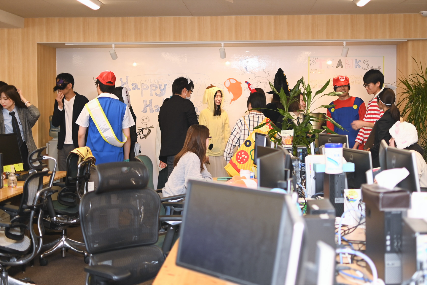 なかには自宅から仮装で通勤したツワモノも(笑) ※マイカー通勤の方です。