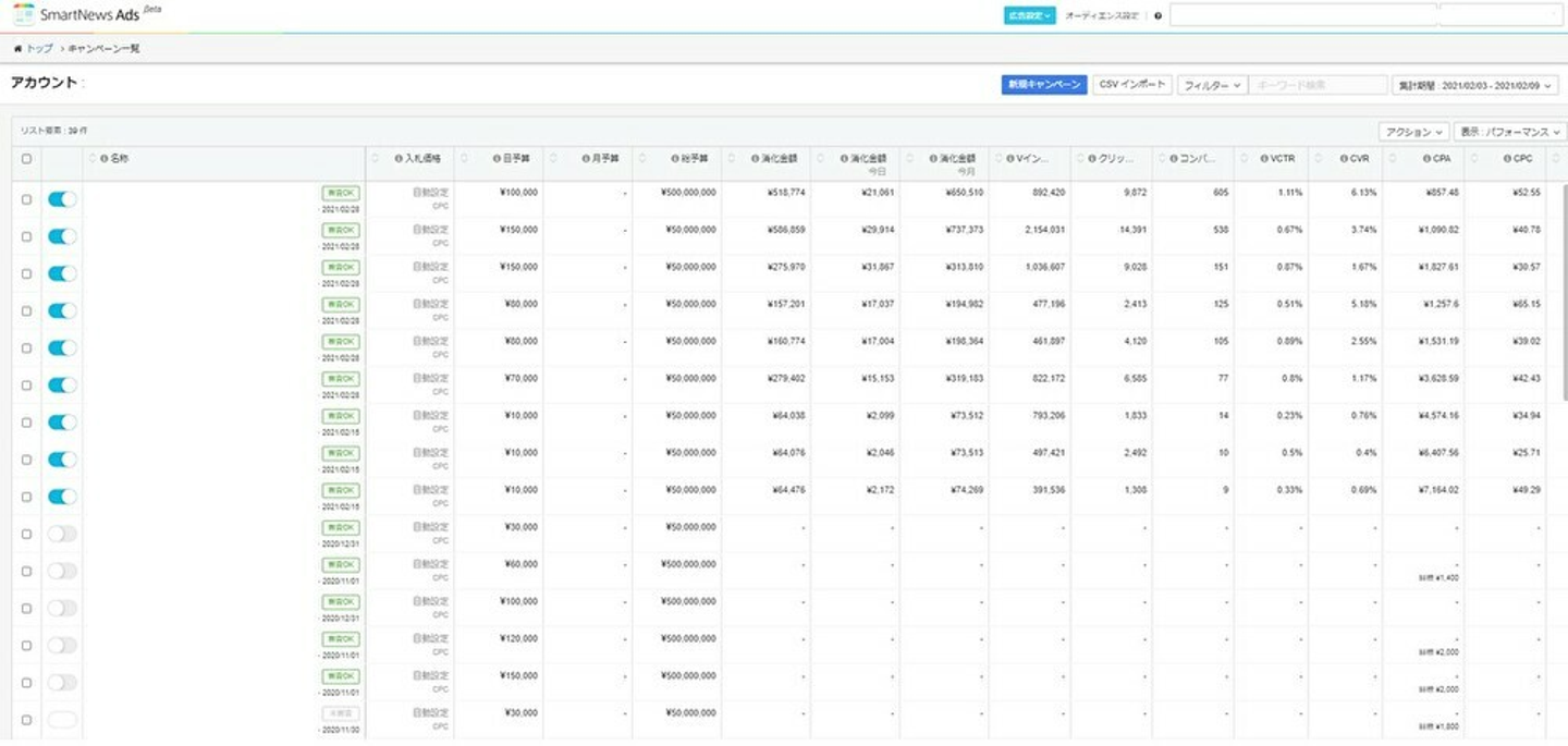 ▲Shiftで扱っている媒体の一部ですが、広告運用事業部のメンバーは毎日この画面に向き合っています♪