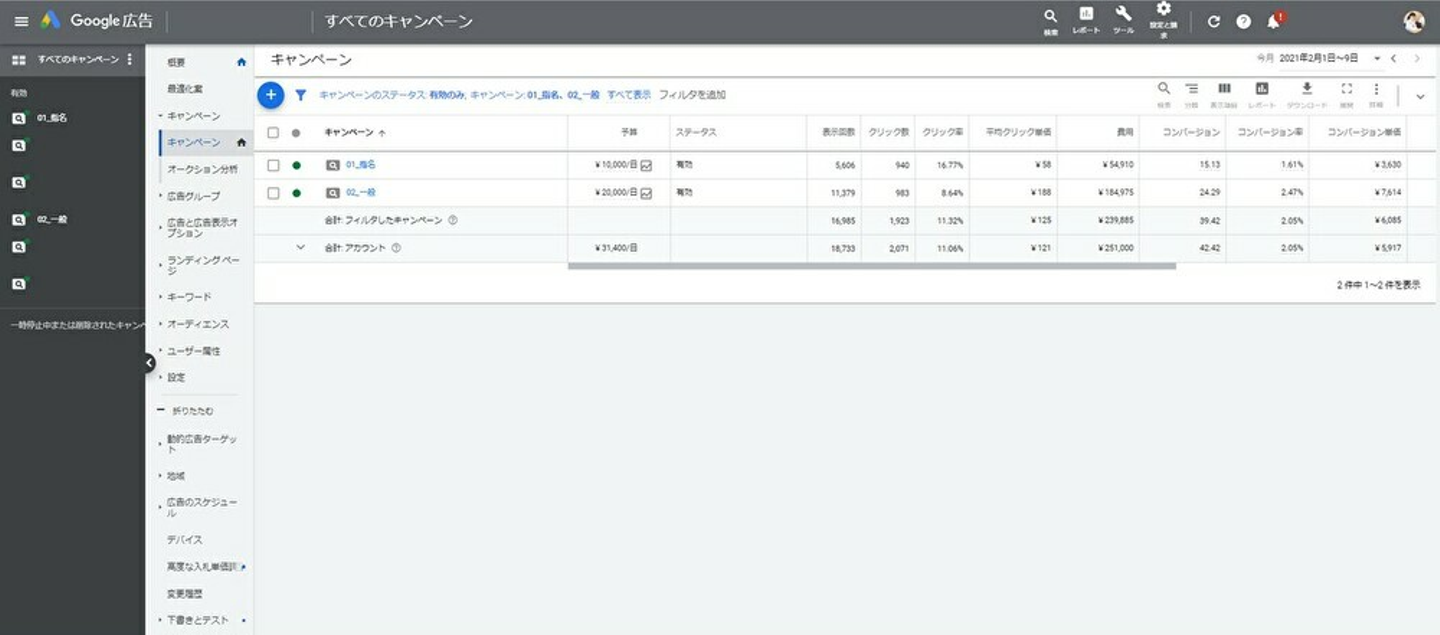 まずは、担当している広告主のアカウントの実績はどうか(消化コスト、目標に到達⇔未達か、など)進捗確認を行います。