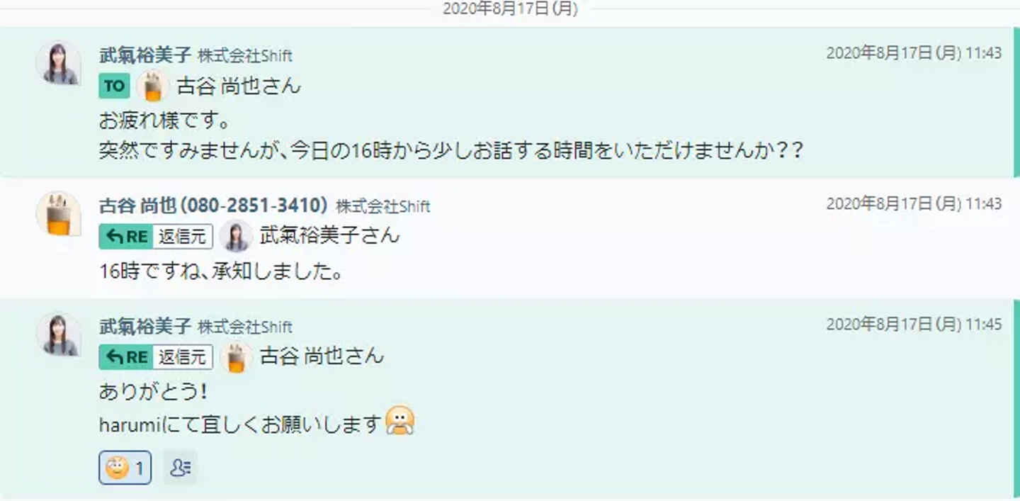 もちろん戸惑いもあったかと思いますが、異動のお願いを伝えたその場で快諾していただけたときは、私も心底嬉しかったですし、こうして何にでも挑戦するマインドを持っている彼はすでにShiftメンバーなんだなぁ。。と思ったことを強く覚えています。