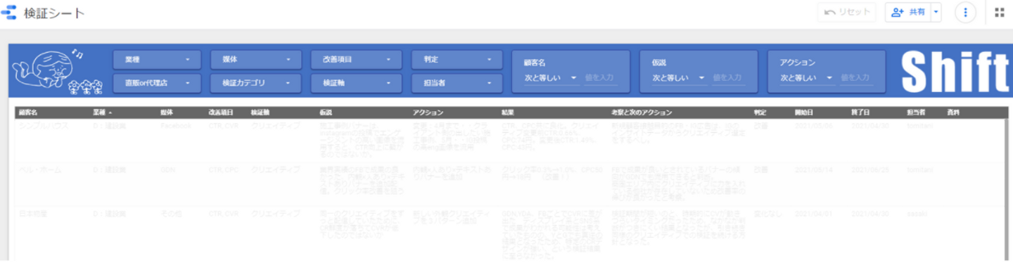片岡さんはExcel能力はもちろんなのですが、Excelやスプレッドシートを駆使して、会社全体で使えるフォーマットを整えてくれたり、機能を生かして応用的なデータ収集の資料を作っていたり、ShiftのExcel・Googleスプレッドシートの先駆者のひとりでもあります。