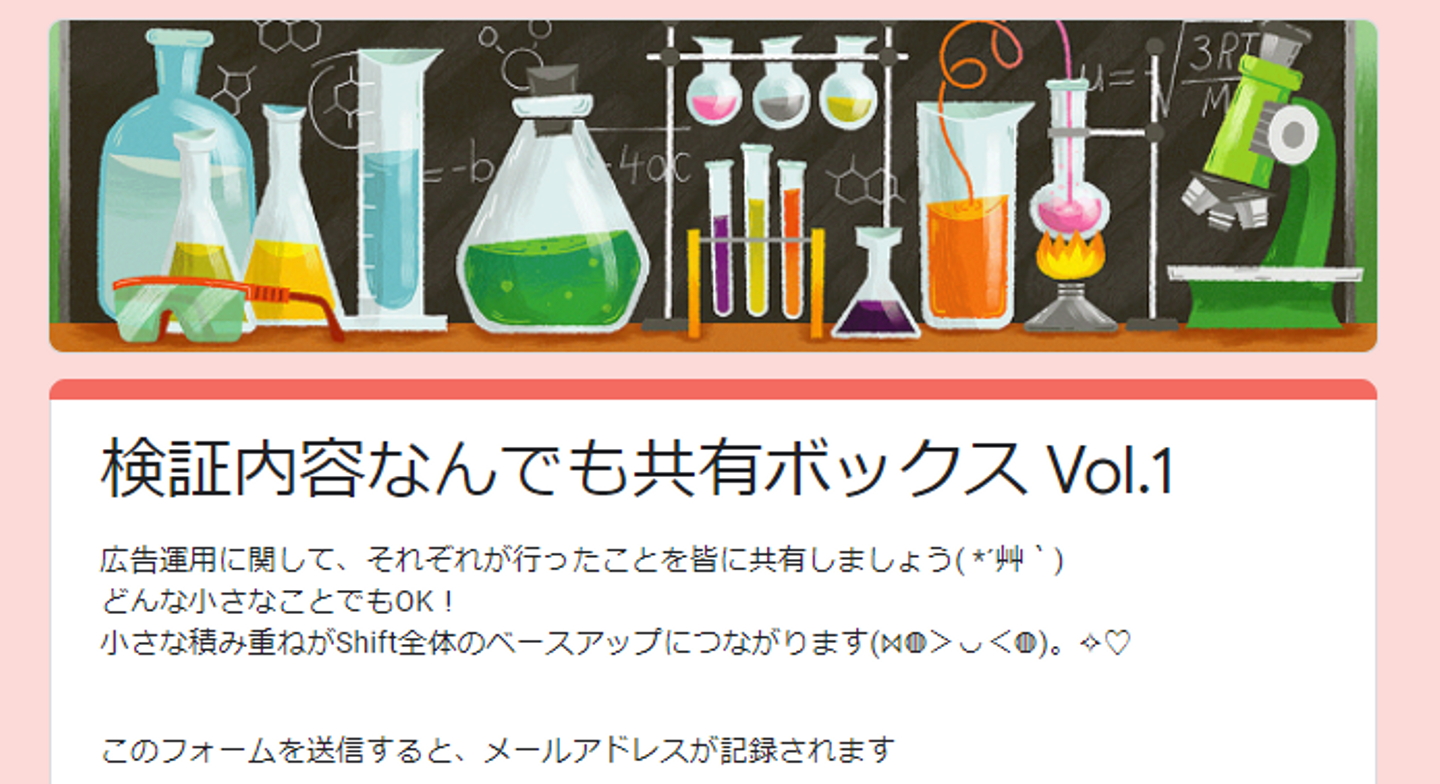 ▼【クリエイティブ検証フロー】まずはフォームにてメンバーが検証内容を投稿