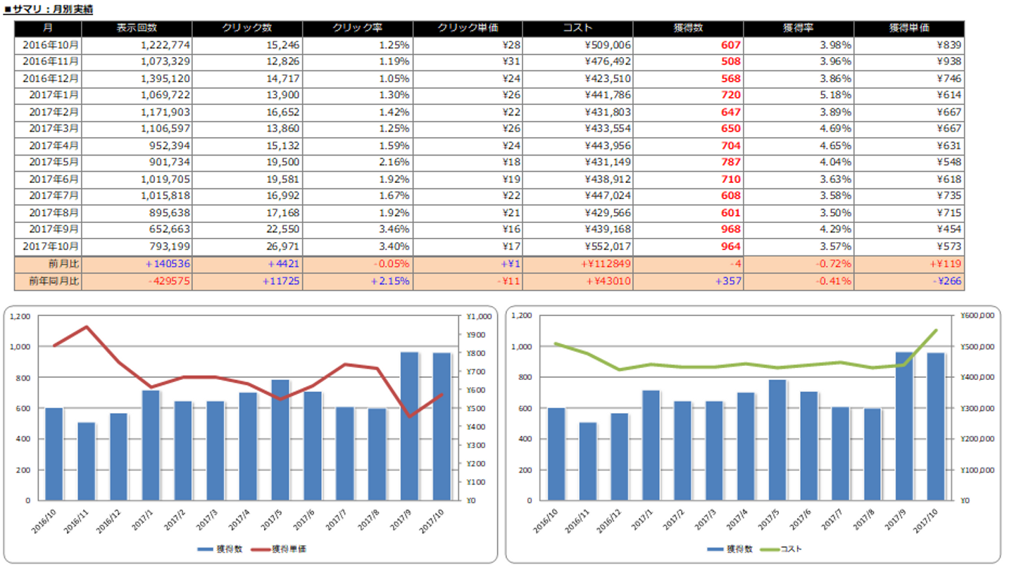 ▼資料例(月間レポート)【Excel】