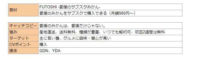 ・ユーザーが何これ!って目に留まるフレーズを入れる→【みかんのサブスク!?】