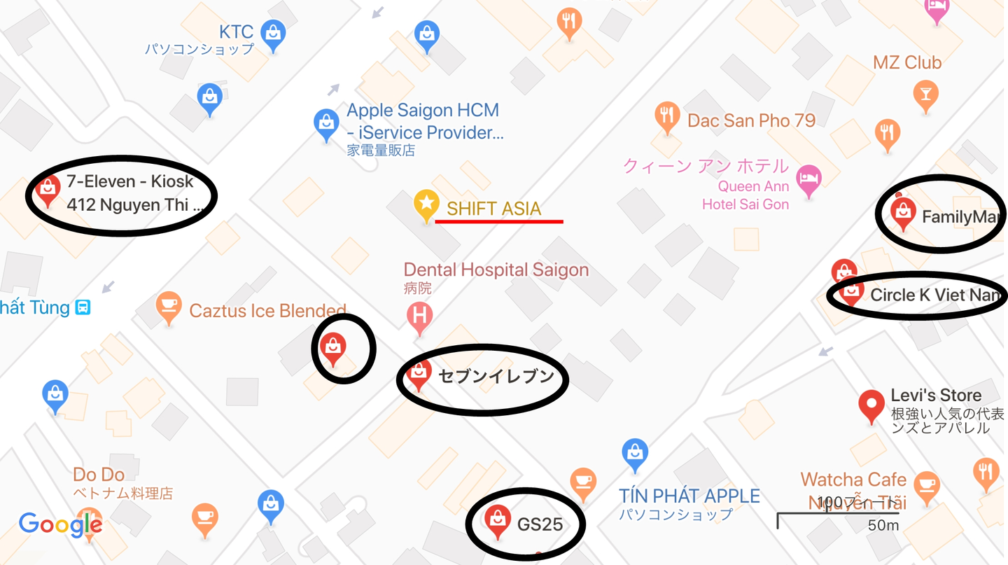 SHIFT ASIAの半径500M圏内でも6店舗あります。