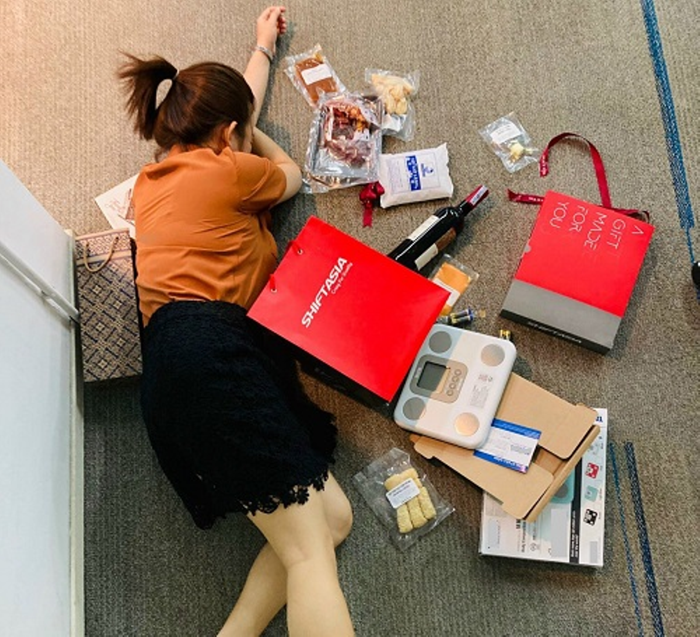 自宅から参加している多くのメンバーに充実した時間を過ごしてもらうべく、YEPに先立ち全社員の自宅などにギフトセットが送られました。(お肉、ワイン、体重計・・・)さらに、けっこうなボリューム感で届いたギフトたちを被写体として「SHIFT ASIAフォトコンテスト」も開催!入賞者には商品券が贈呈されました!