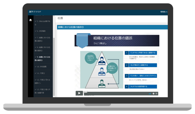 現在は、組織診断ツール「識学サーベイ」と、識学を動画で学べる「動画トレーニング」、評価管理やタスク管理といった、4つの機能があり、特に「動画トレーニング」に関しては「識学トレーニングの復習や部下育成に役立つ!」とのことで、好評を頂いています。
