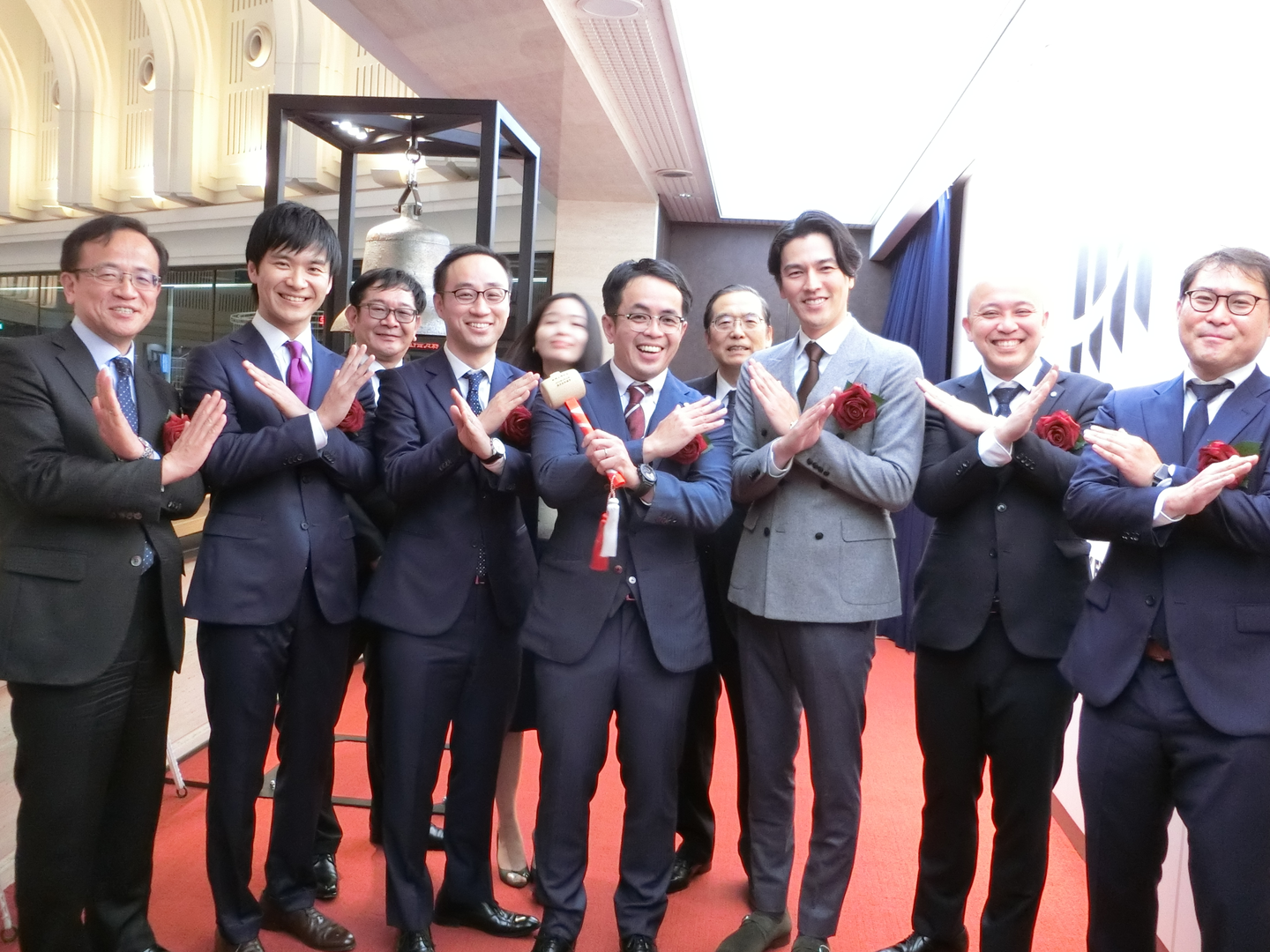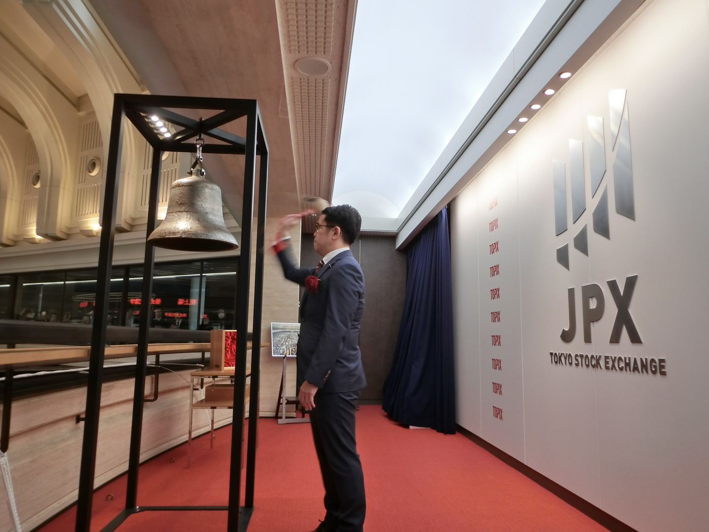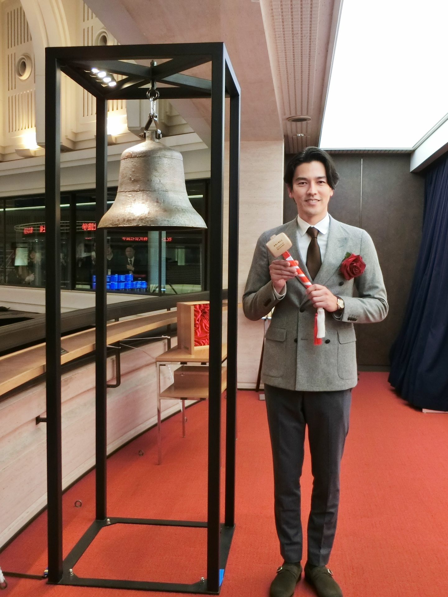 上場を記念し、鐘を鳴らして企業のさらなる発展を願います。
