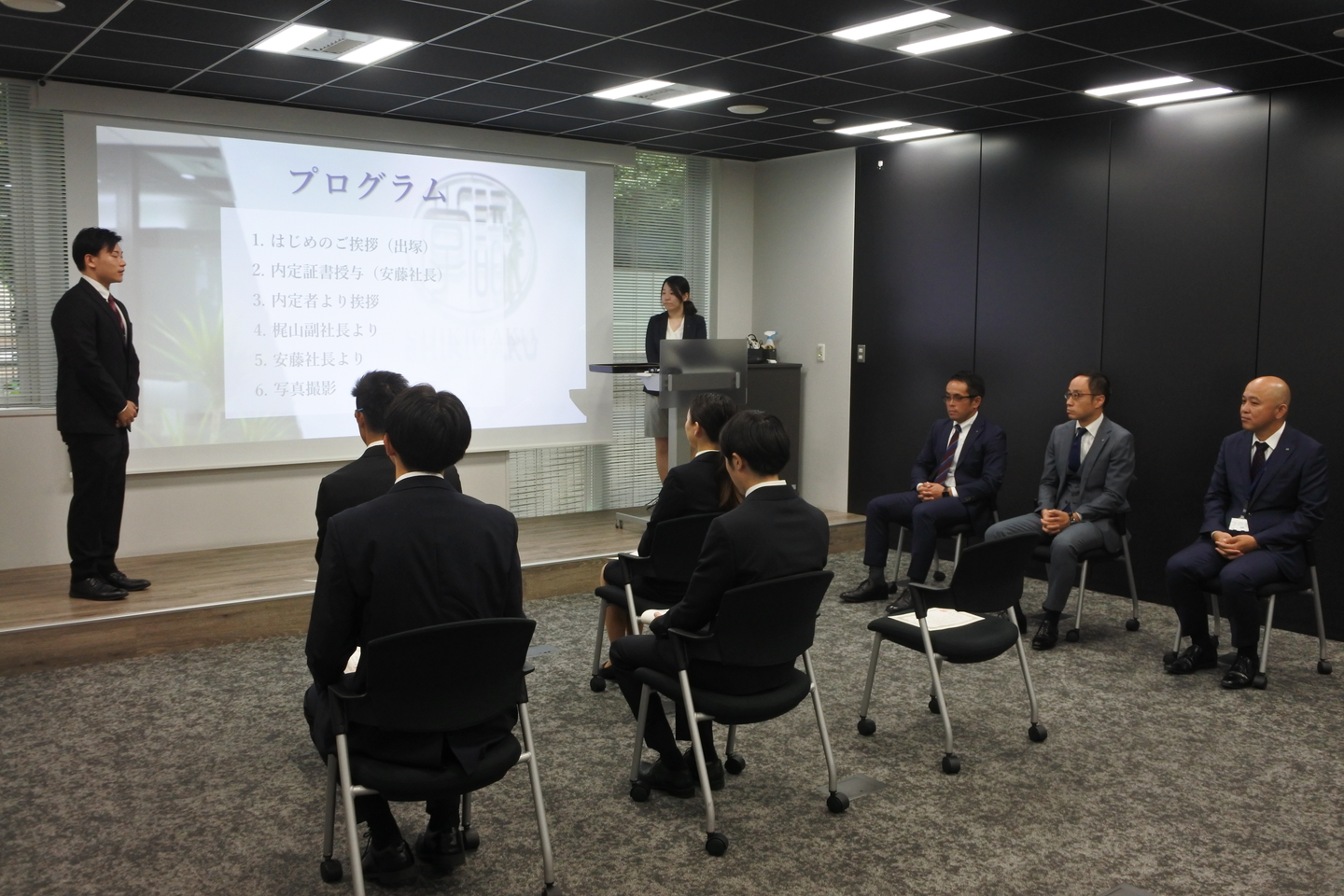 安藤社長、梶山副社長、からのお言葉に、内定者の気持ちも引き締まり、やる気に満ちた表情でした!