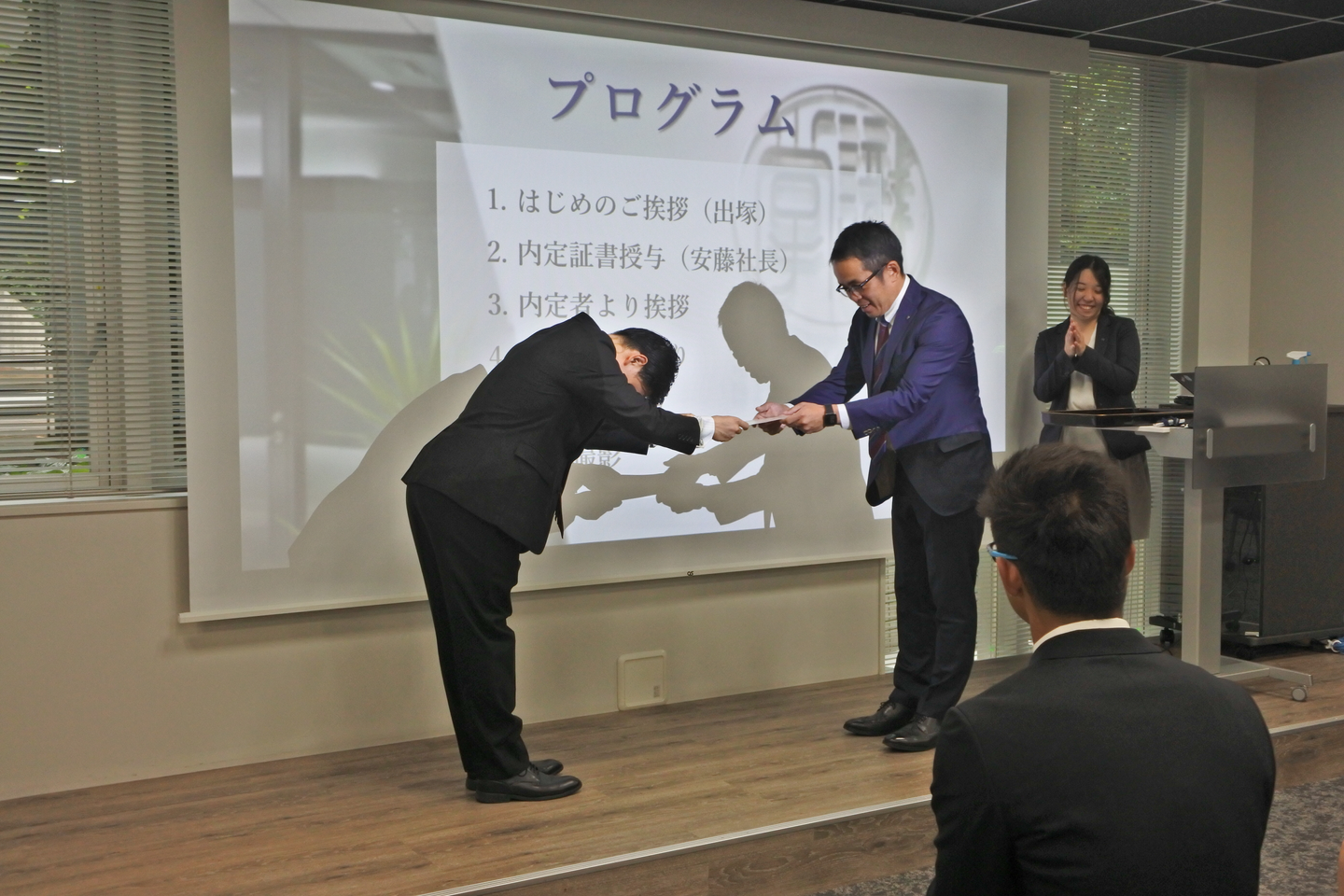 安藤社長からの内定証書授与