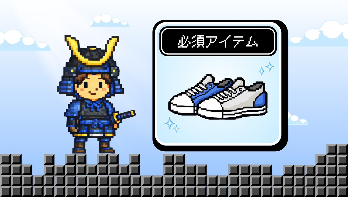 チカヒサくんの必須アイテムは「厚底シューズ」です。