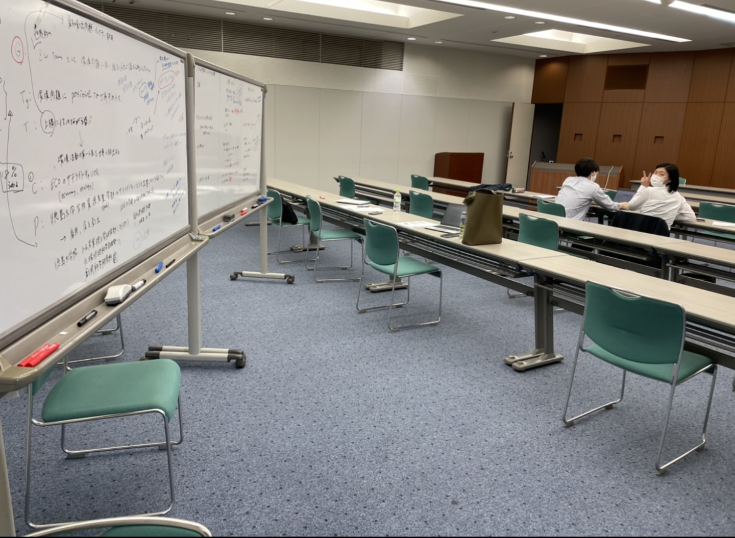 これがまた非常に難しい。2人1組のペアで次の日の夕方に発表。時間がない中、考えれば考えるほどわからなくなる中、全員で男子寮にこもり深夜までひたすら考え抜きました。