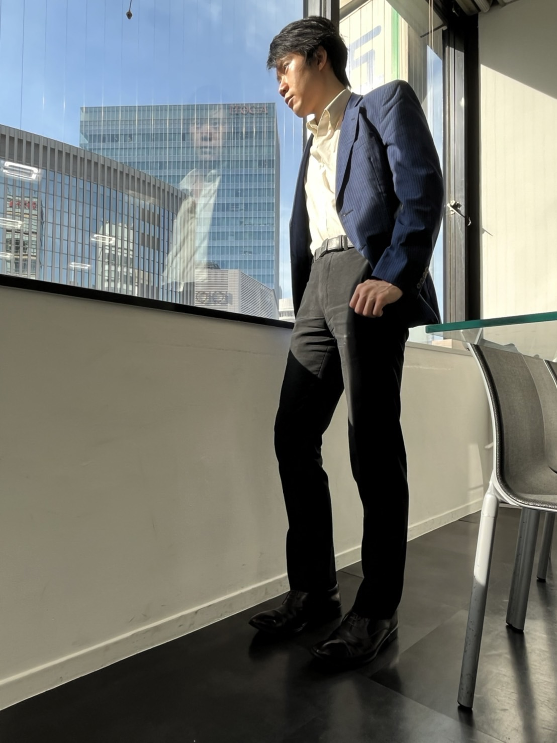 毎日ビシッとおしゃれなスーツで姿勢正しく出勤されていて、足が長く細身なのでスーツが非常にお似合いです。(さらっと「細身」と書きましたがここにも松永さんの変な一面が隠されているのでまた後ほどお話ししますね。)