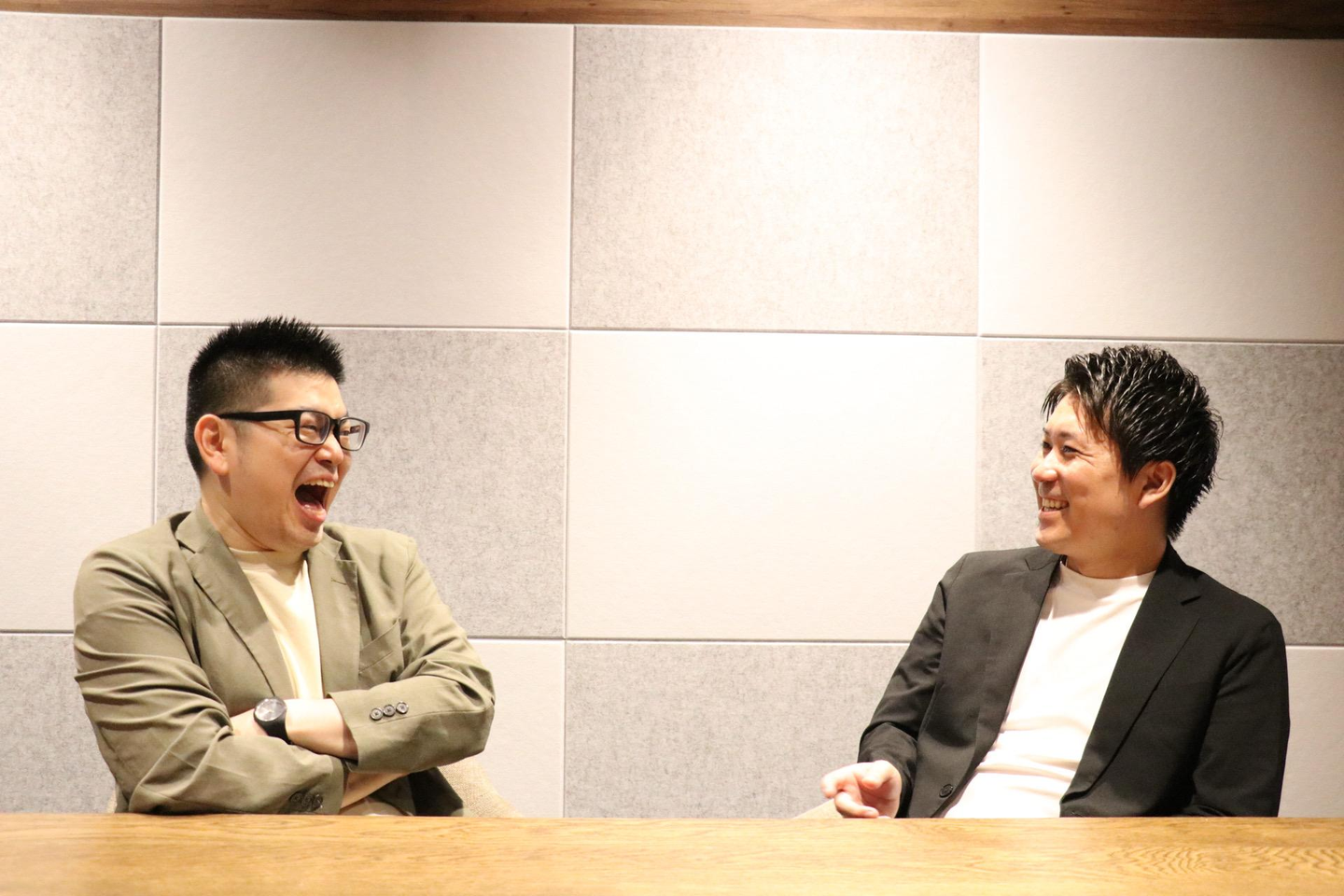 インタビュー途中、尊敬する大先輩(石渡さん)と談笑する場面も・・・