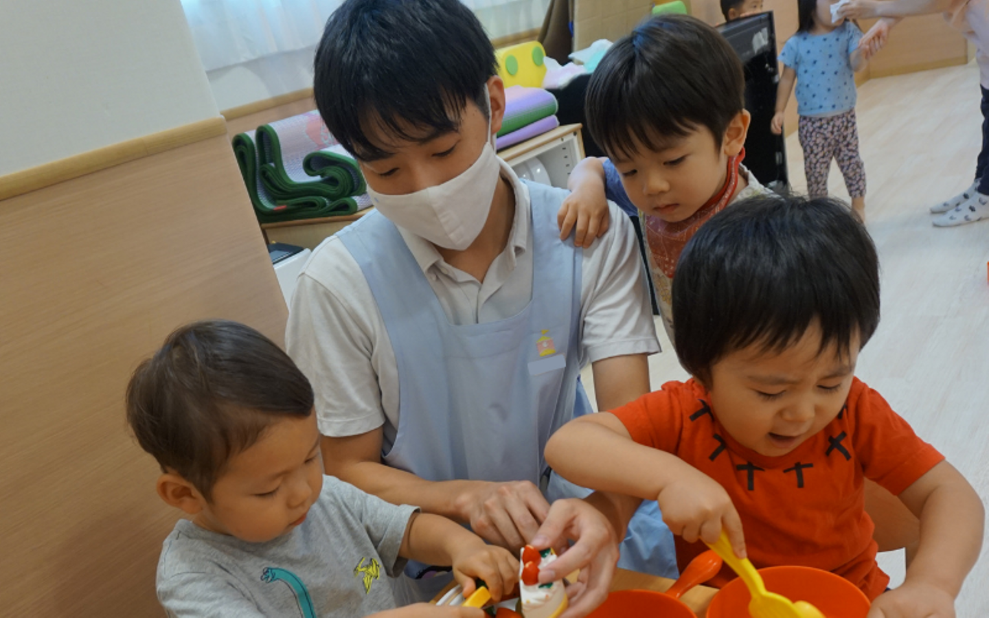 子どもの笑顔に出会え、子どもの目線で新しい発見がある場所です。子どもたちの笑顔のために、子どもの楽しいを一緒に楽しむ気持ちを大切にしています。