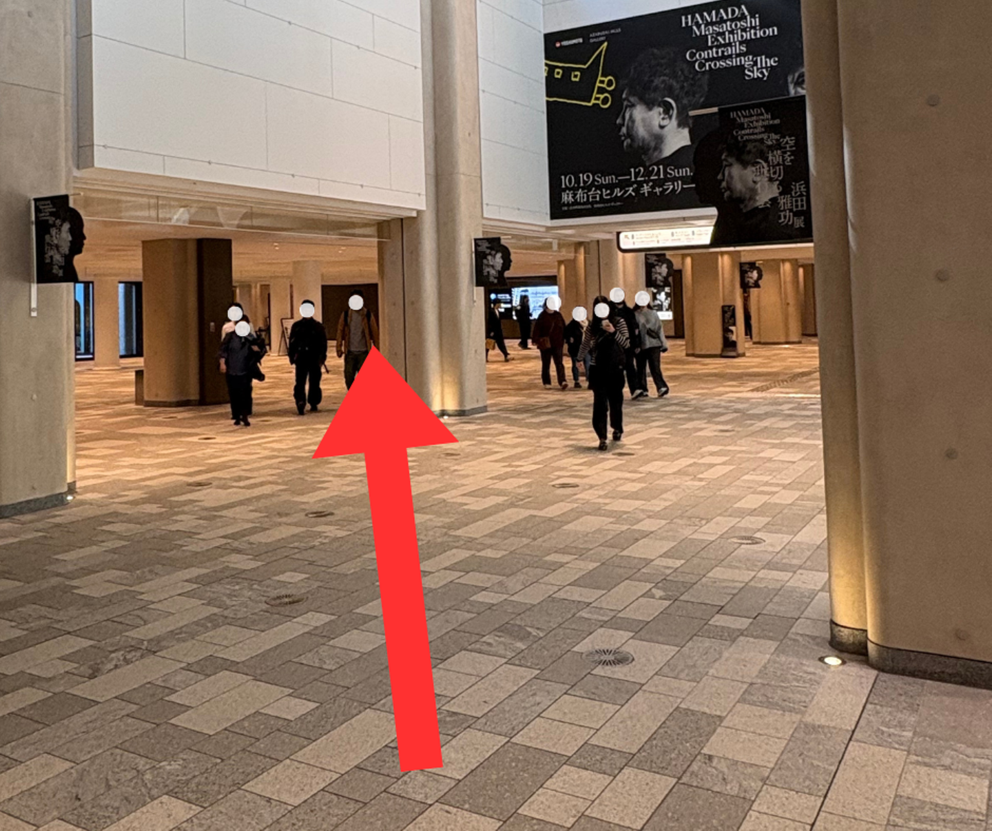 ②吹き抜けのある場所まで来たら、左ななめ方向に進みます