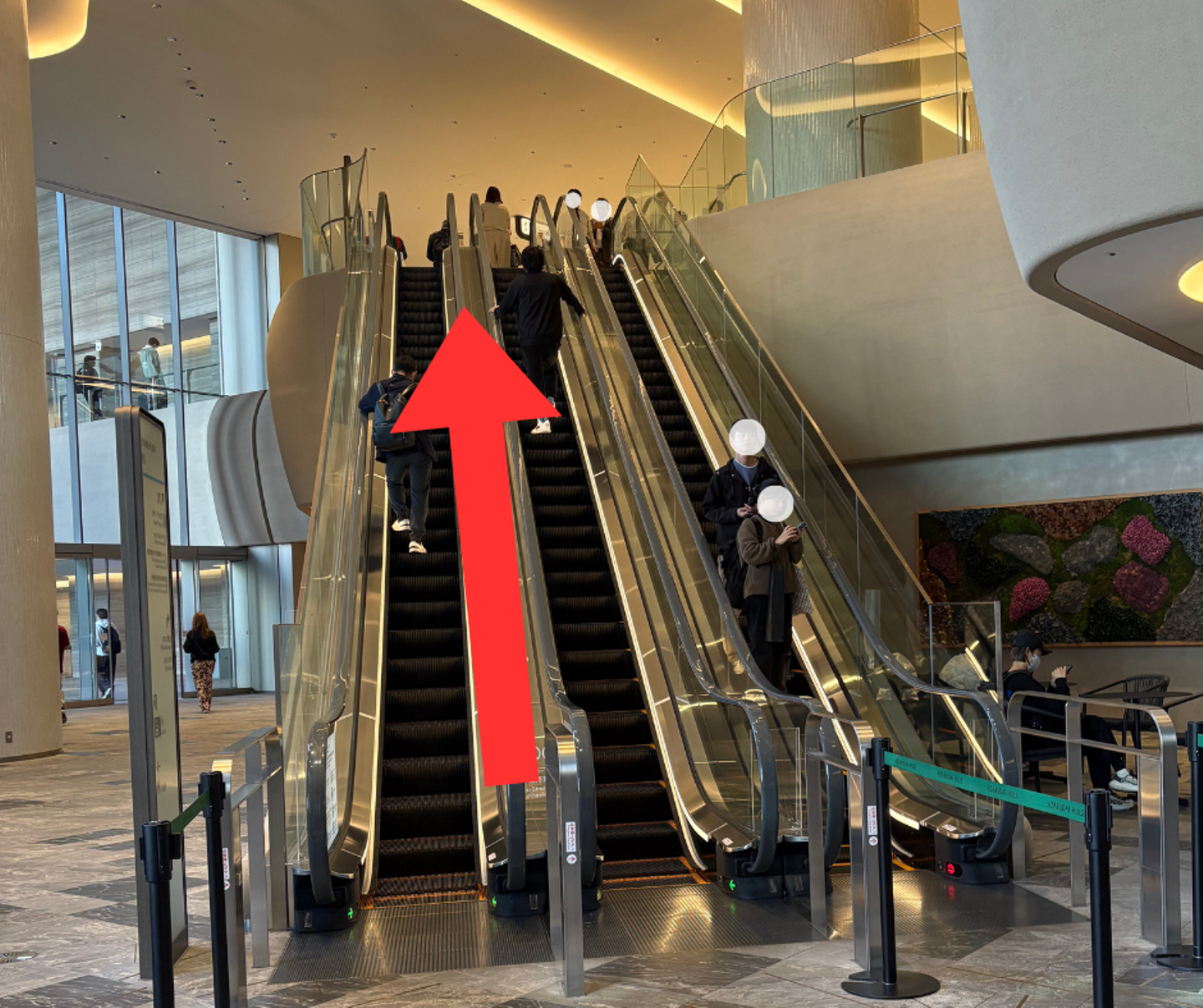 ⑥左手のエスカレーターは使わずに、矢印の方向に進みます。