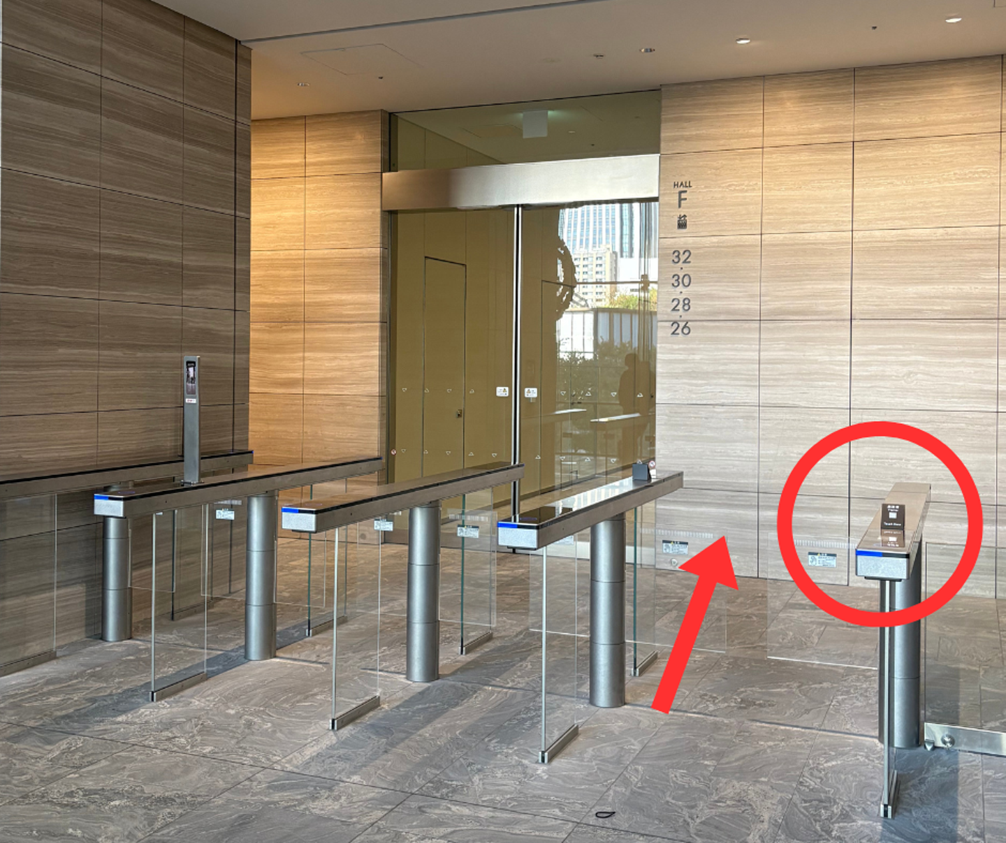 ⑦入館用のQRコードを訪問者専用レーンにかざして中へお入りください。