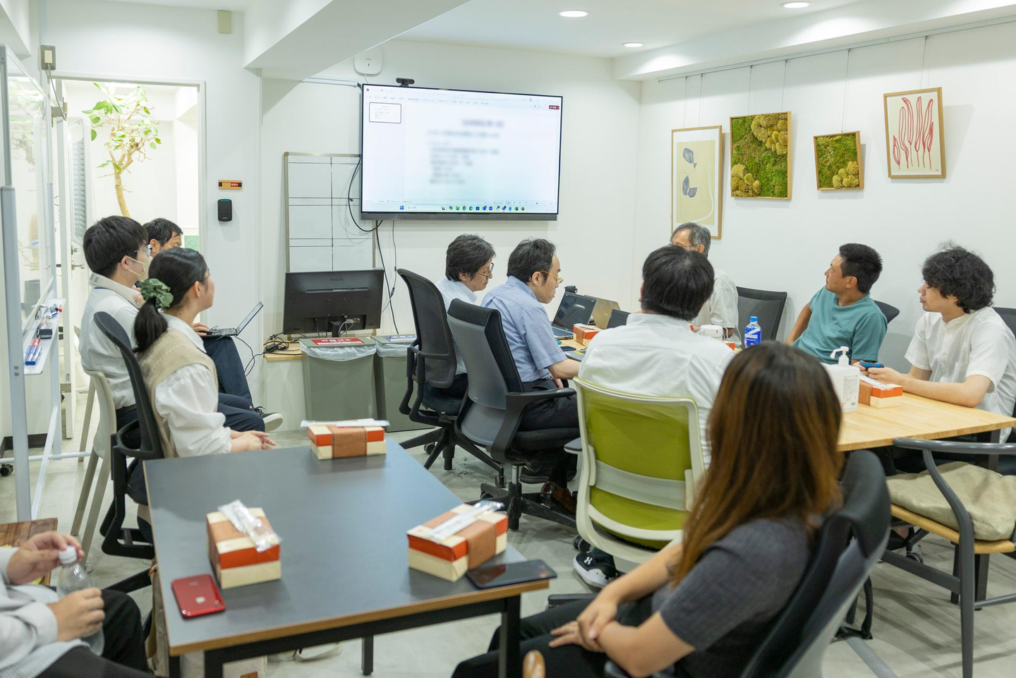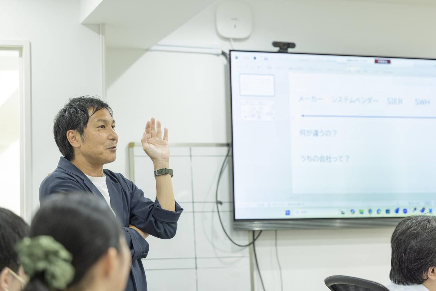 SS本部会が始まる時間が近づくと「お疲れ様でーす!」といつもはそれぞれのプロジェクトで案件先や在宅で作業している社員が帰社してきます。