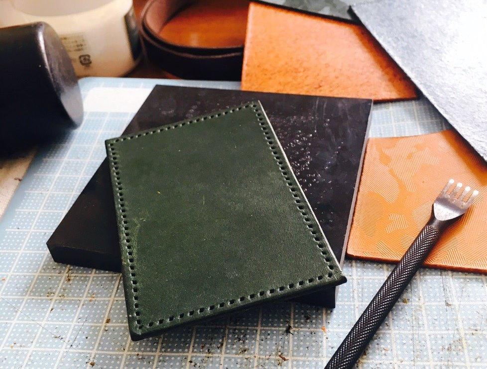 ▼定期入れ制作中とのこと!器用・・・そしてオシャレ!!レザークラフトってすごい・・・。