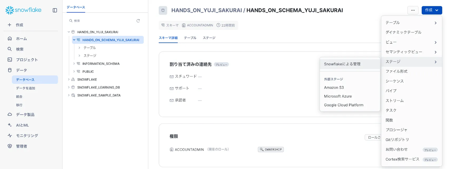 Snowflake: データベース、スキーマ、テーブルの作成、ローカルからのデータロード、AWS S3からのデータ連携(外部ステージの利用)