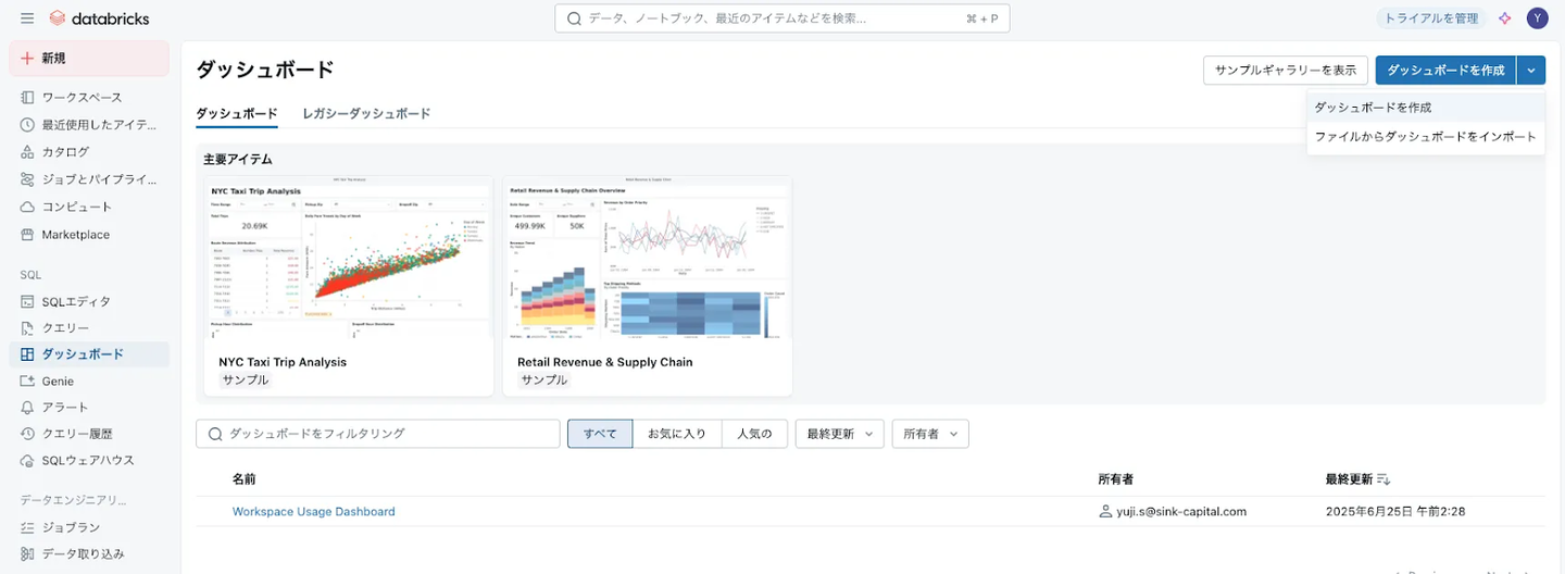 Databricks: カタログ、スキーマ、ノートブックの作成、可視化・ダッシュボード作成