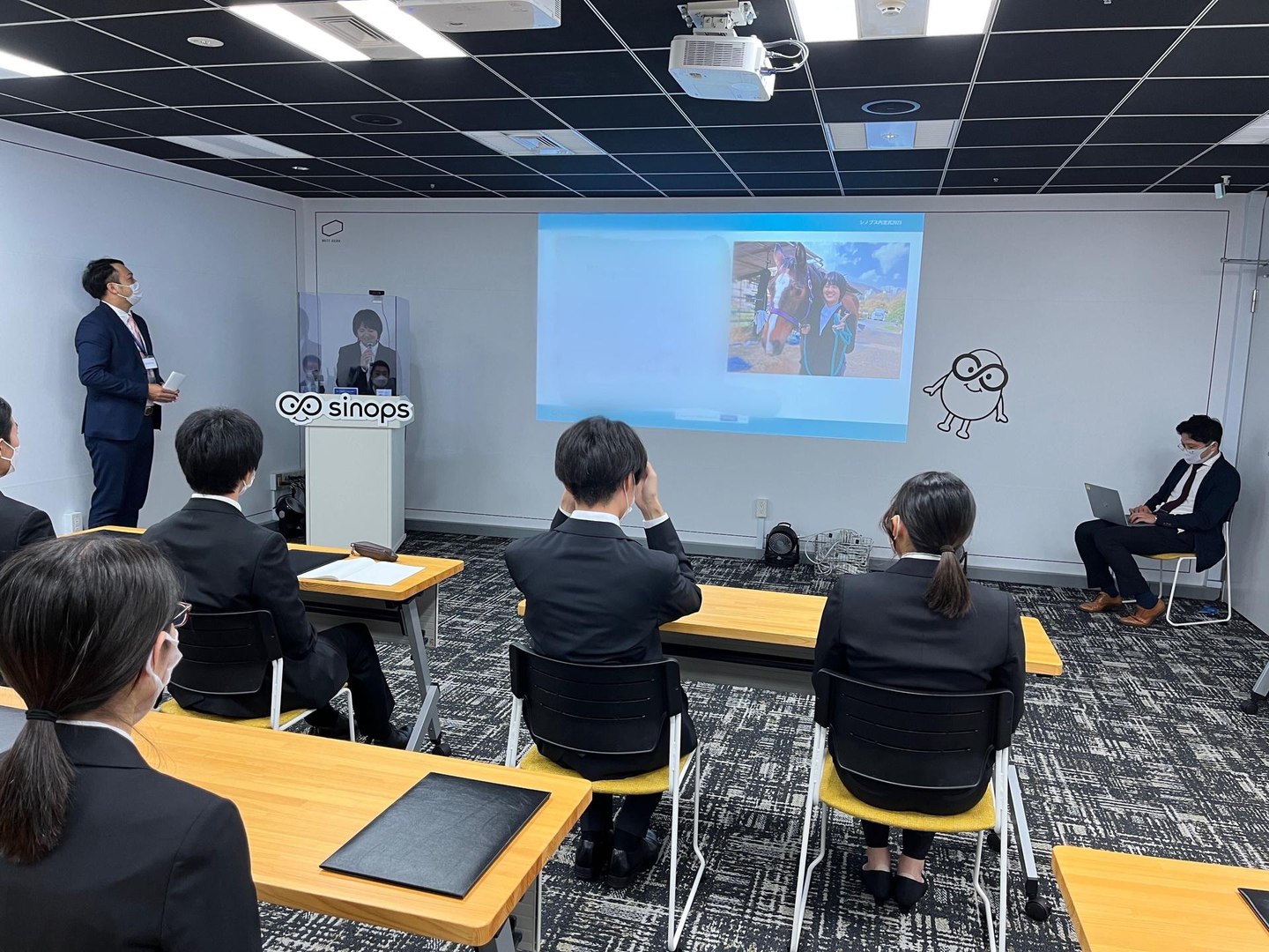 本社は大阪ですが、昨年より内定式は東京で開催しています。その理由は「リモートワーク」です。シノプスではリモートワークを推進しており、弊社の拠点(大阪本社・東京オフィス)から遠い場所からでもリモートワークで就業可能です。
