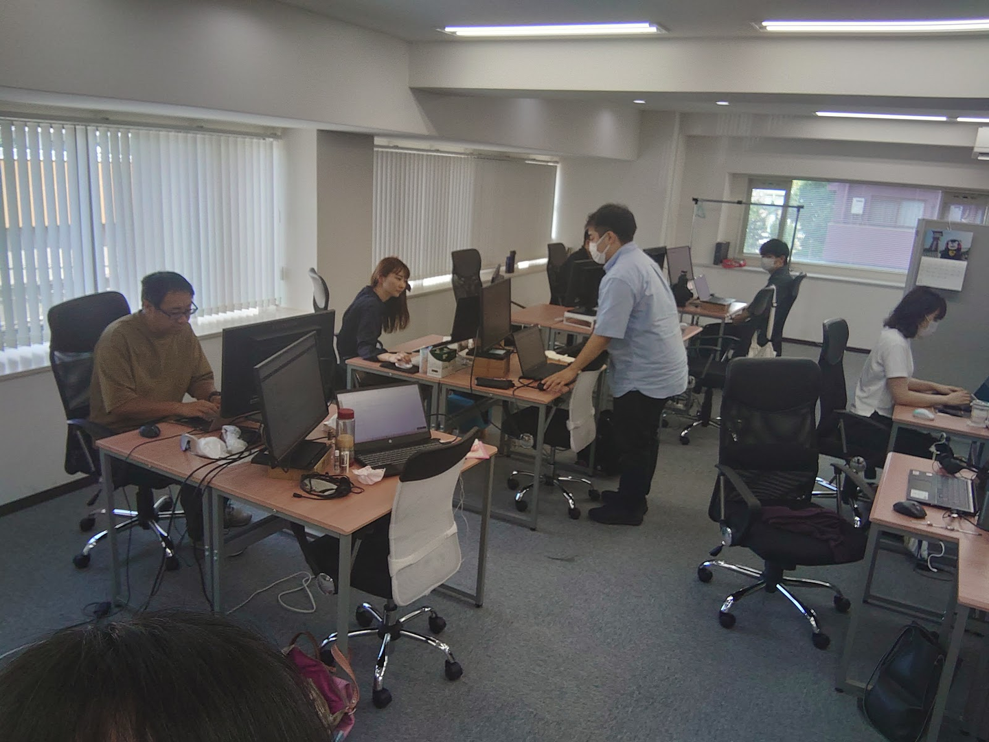 まだ人数もそこまで多くはないため、広々と机が置かれていますが、端の席からでも全員の顔を見回せます。