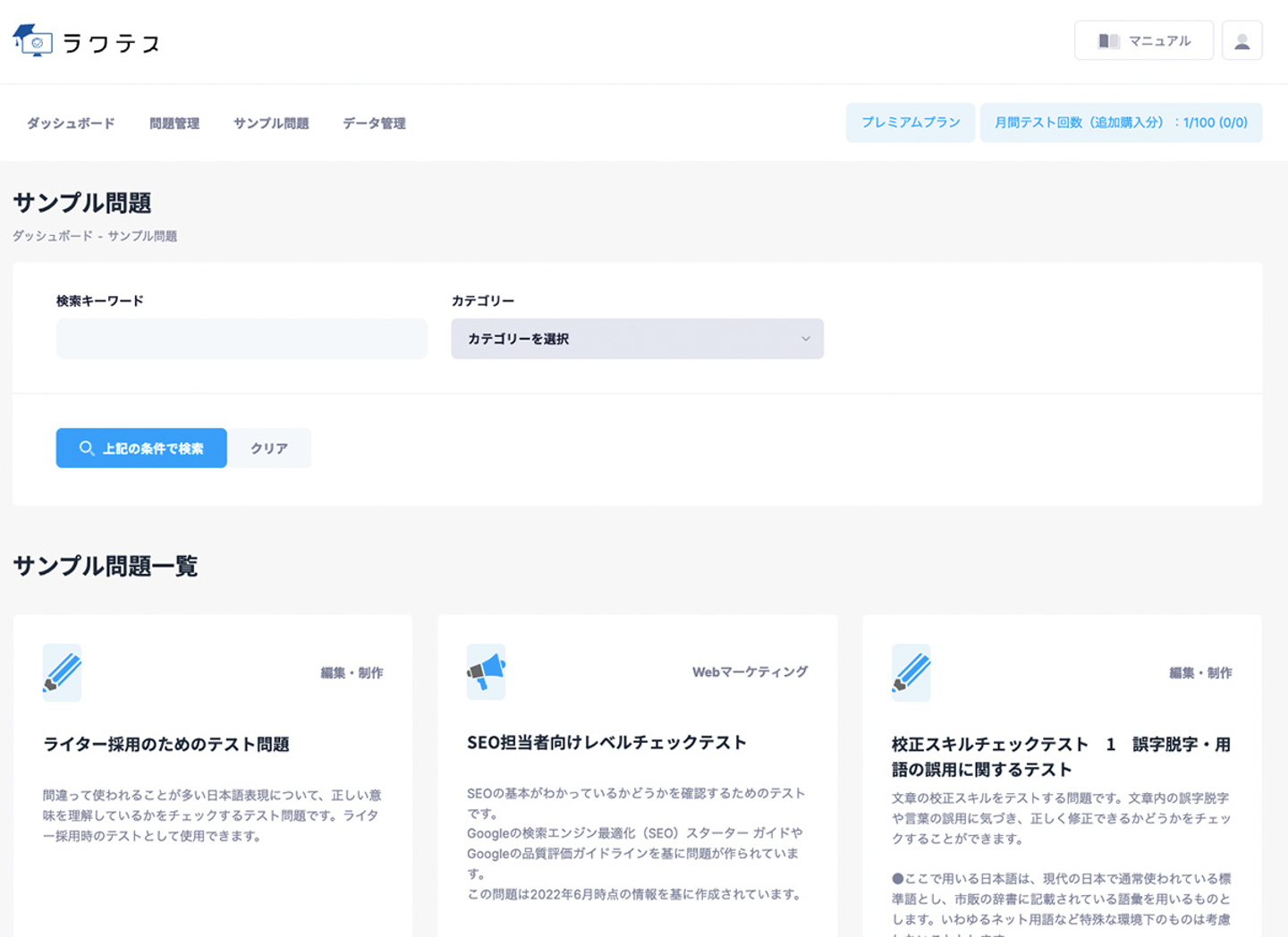 弊社は、筆記試験や適性試験の作成・採点ができるSaaS「ラクテス」を開発・運用しており、自社の採用試験にもこの「ラクテス」を活用しています。