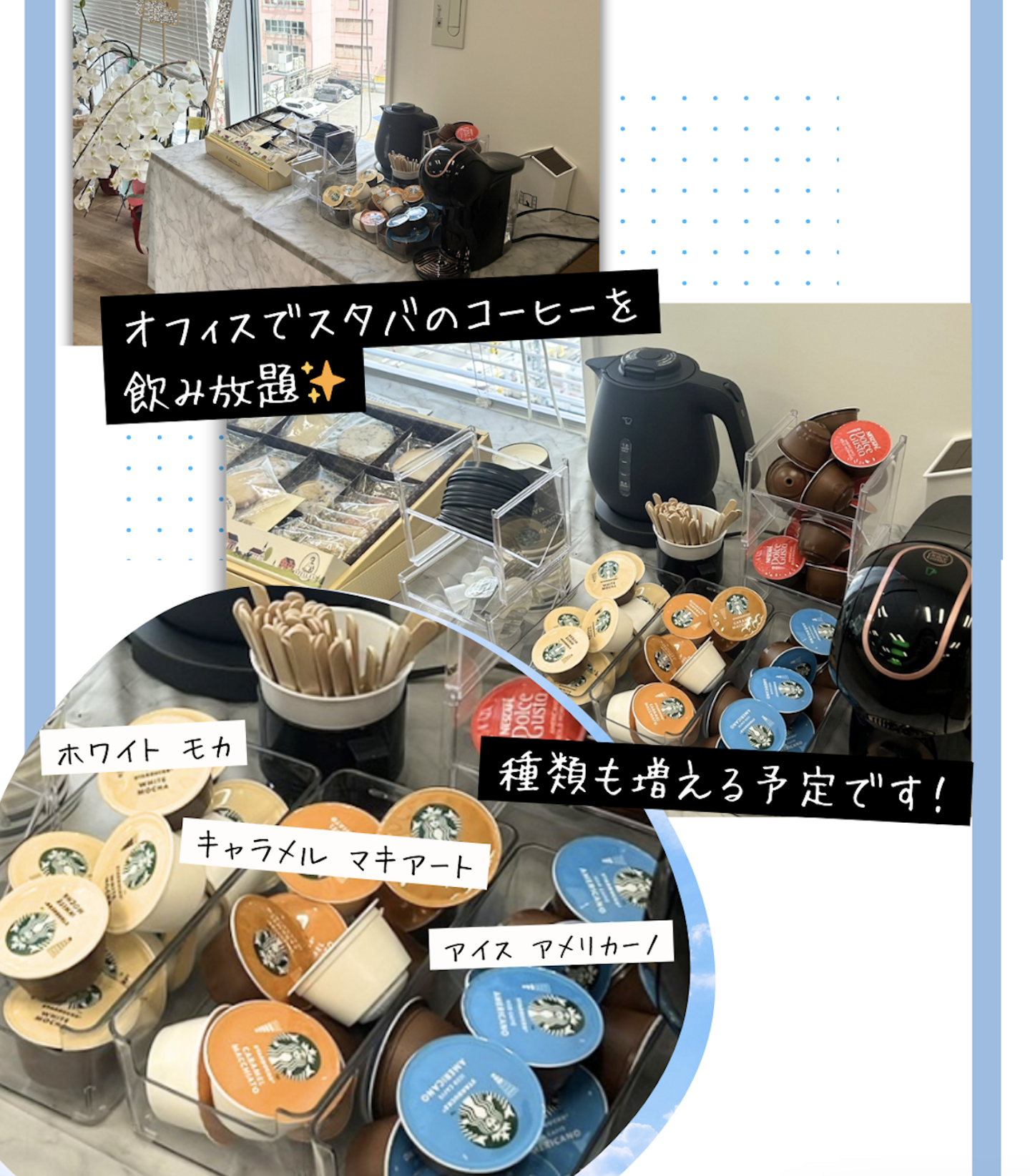 スターバックスのカプセルを常設したので、オフィスでいつでもスタバのコーヒーが飲めるんです♪
