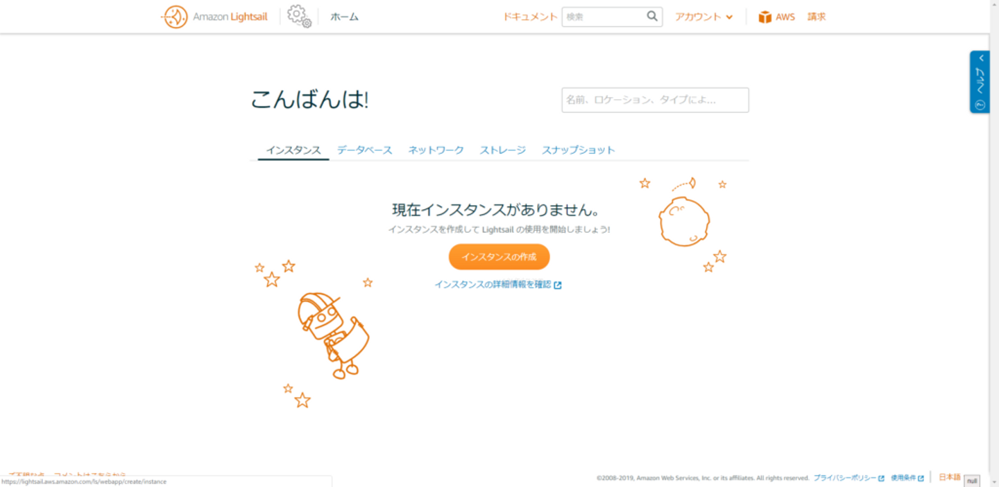 インスタンスの作成をクリックしてインスタンスを作成します。