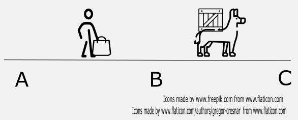 - 地点Aから地点Bへはバッグを持って人が歩いて運ぶ。