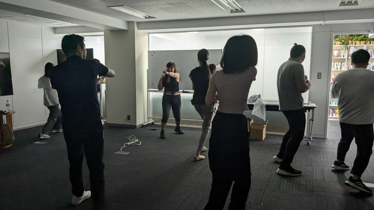 今回の研究では、私たち管理本部のバックオフィスメンバー約10名が、この画期的な研究のデータ収集に貢献しました。まず、運動習慣に関する詳細なアンケートに回答し、最新のスマートウォッチを装着。そして、タニカワ氏の専門的な指導のもと、様々な運動やシャドーボクシングなどを行いました。