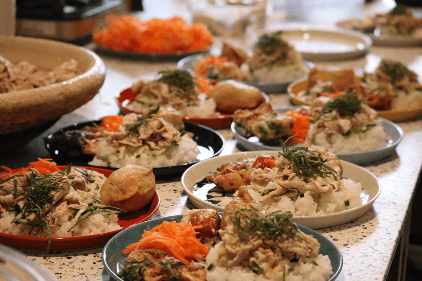 そう言えば、イベントのケータリングとして出す「出前の寿司」を、たこ焼き用の器に小分けにして並べたことがありました。