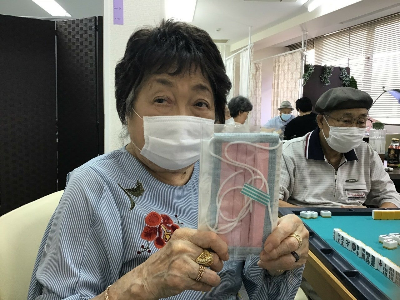 [写真] 「人間レストラン」から新宿デイサービスのご利用者様にお手製のマスクをプレゼントして頂きました。