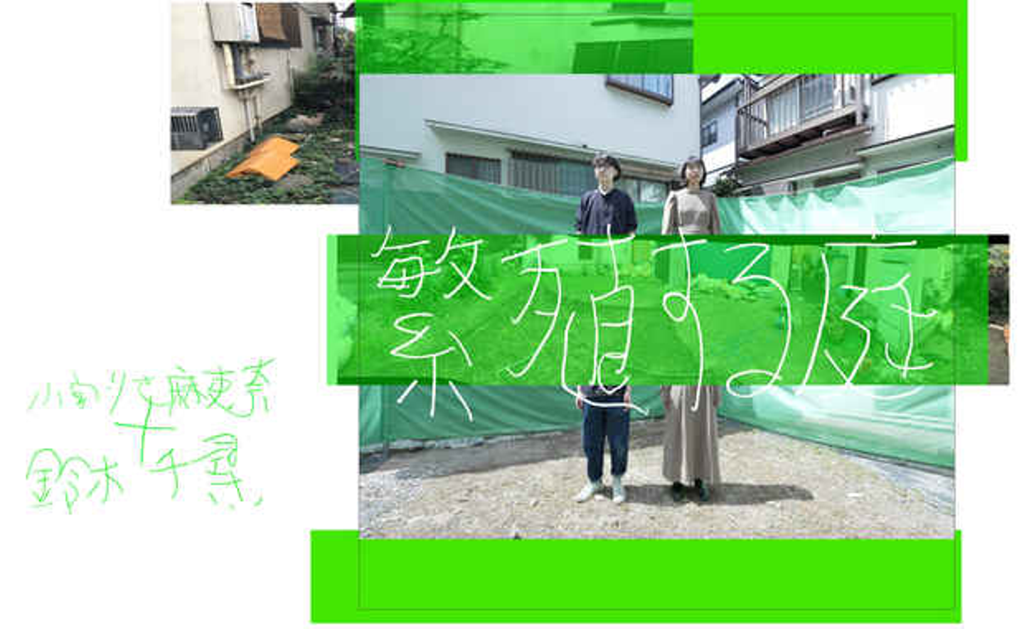 現行の建築基準法の規制により家を建てることができない「再建築不可の土地」と、日本の結婚制度で規制されている「同性による結婚」という、2つの制度の間で「規制された家(庭)」を浮かび上がらせるとともに、プロジェクトメンバーである小宮りさ麻吏奈と鈴木千尋自身も異性愛規範から逸脱した「クィアネス」を抱えるアーティストとして、同じく制度からこぼれ溢れた存在であり、そのこぼれ溢れた我々が別の仕方での「庭=場」を作ることを模索し試みるプロジェクトであり、今回の展覧会では以上のテーマを元に制作された映画「繫殖する庭」を映像インスタレーション作品として再構成したものを展示いたします。1