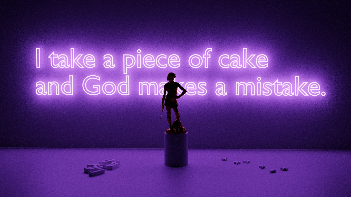 『I take a piece of cake and God makes a mistake.』
