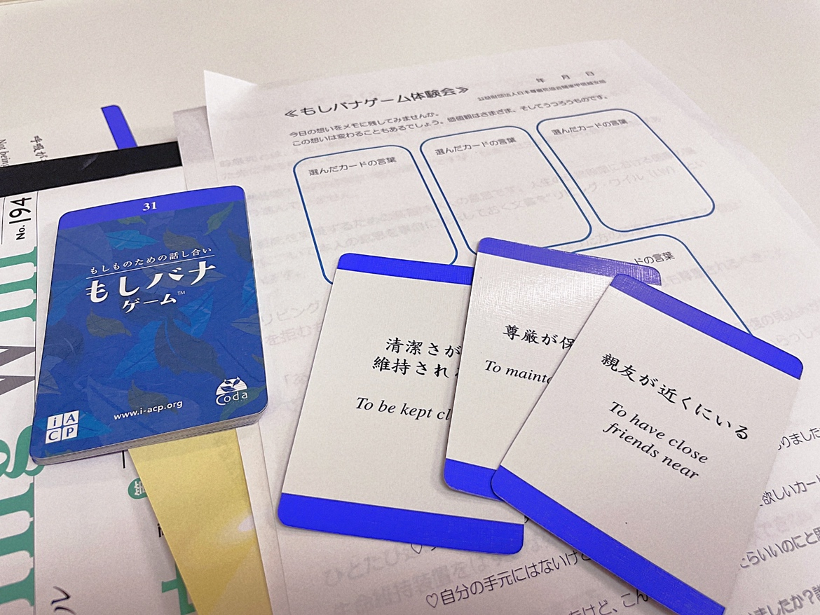 今回は「もしバナゲーム」という米国で生まれたカードゲームを使って「もし自分の余命があと半年~1年だとしたら…?」という想定でレクリエーションを行いました。