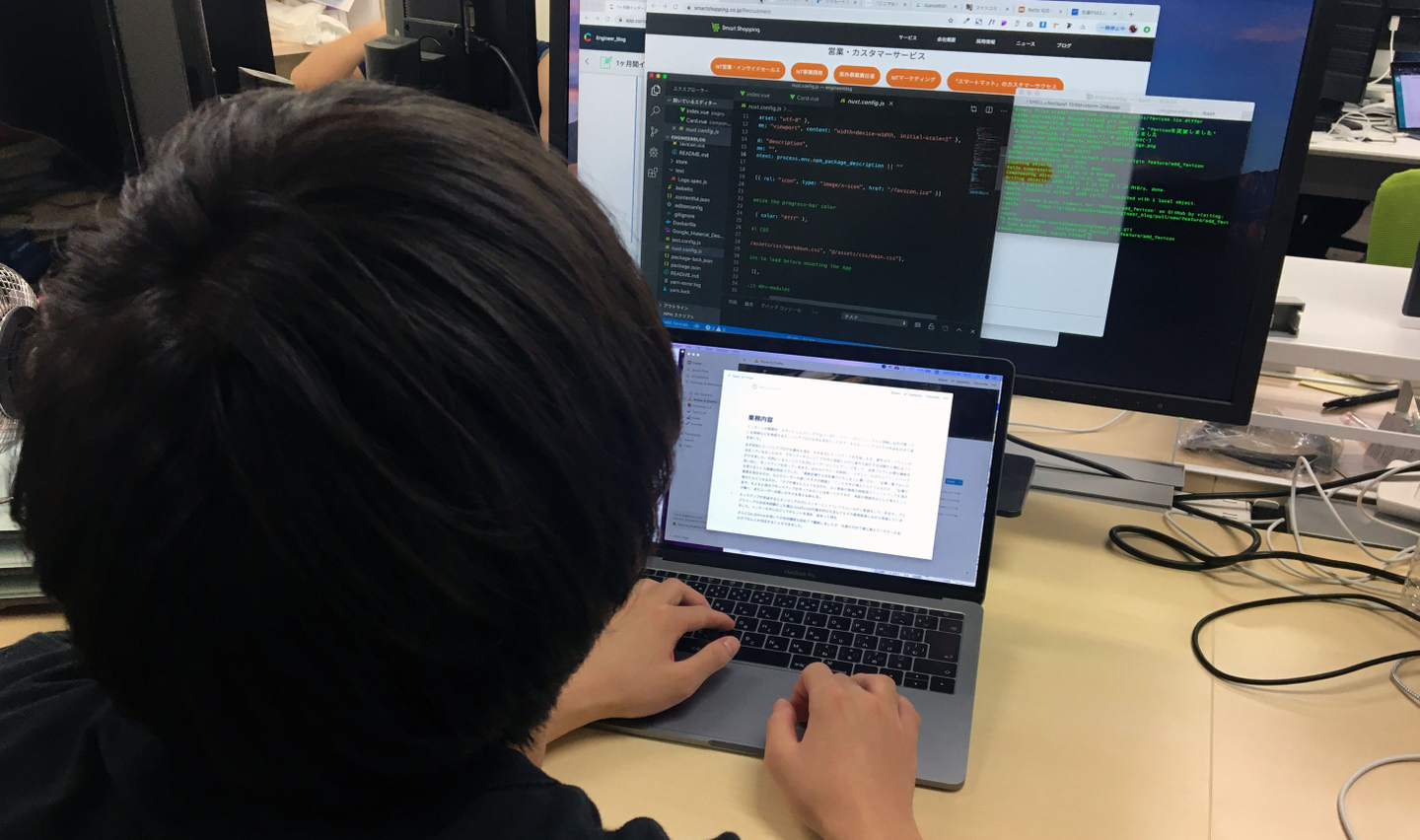 インターンの期間中、スマートショッピングではコーポレートページのリニューアルと同時に