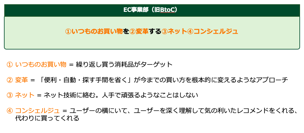 EC事業部ミッションはいつものお買い物を変革するネットコンシェルジュ