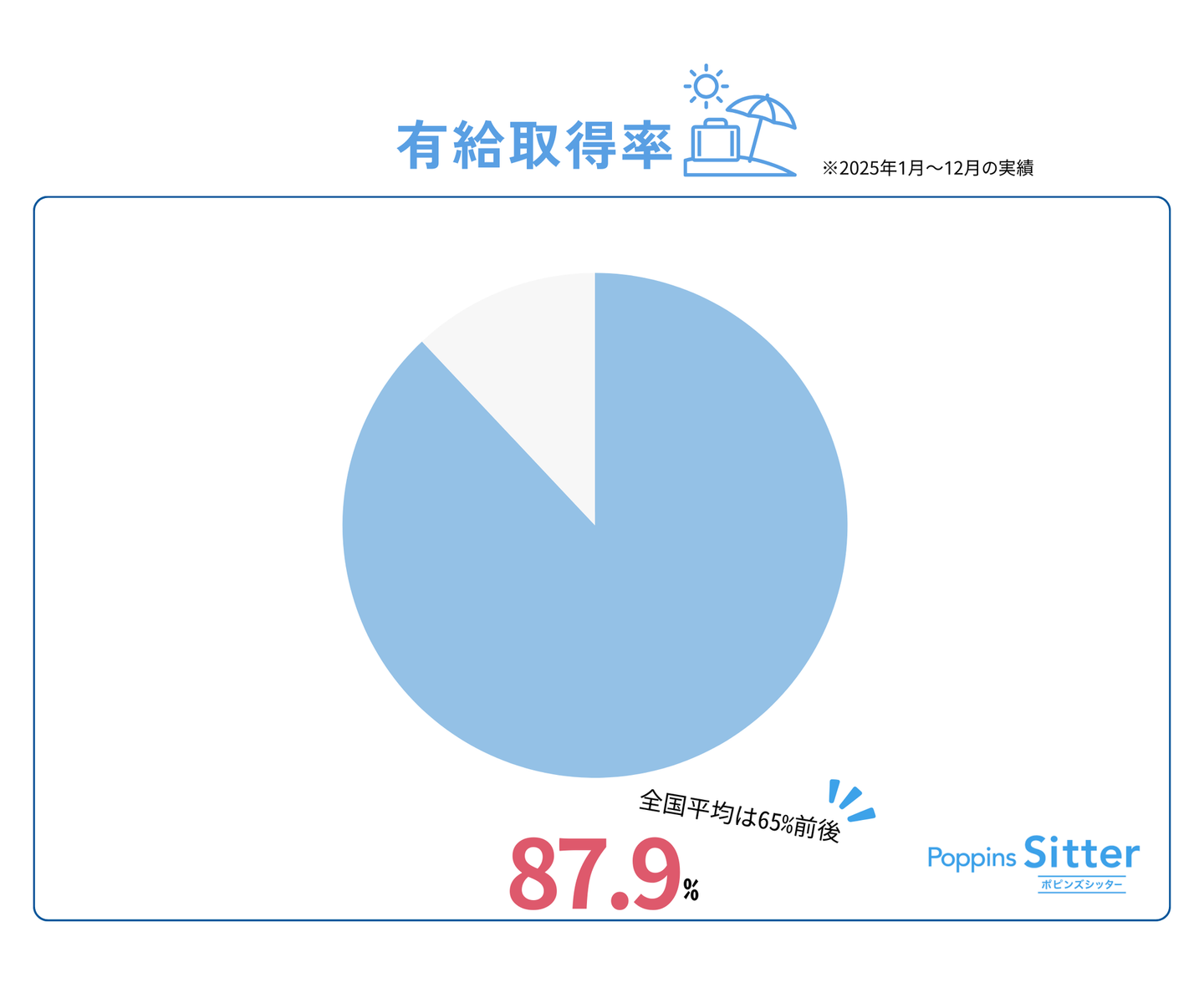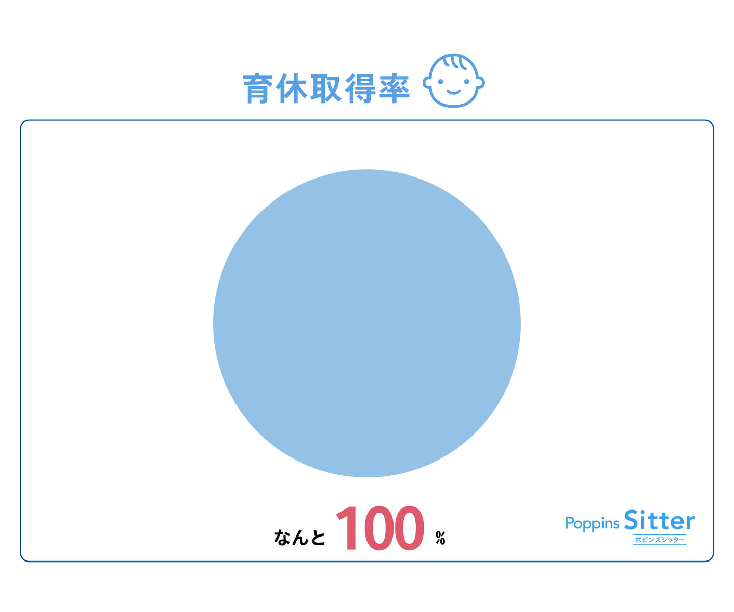 まずは育休取得率から。ポピンズシッターは「子育てを理由にあきらめない」ことを大切にしている会社です。だからこそ、現在社内の育休取得率は100%!です。