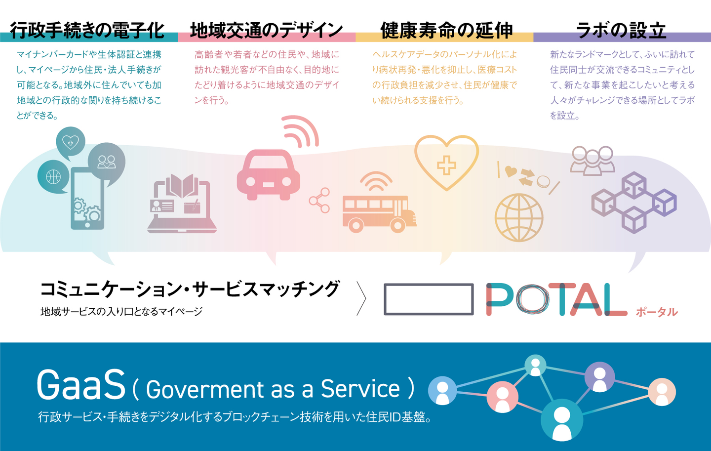 株式会社スマートバリュー( 証券コード:東証一部9417、本社:大阪市西区、代表取締役社長:渋谷 順、以下 スマートバリュー )は、行政サービス・手続きを電子化する住民ID基盤、「 GaaS( Government as a Service )」の稼働を開始いたしました。合わせて、2018年3月より共同でブロックチェーン都市プロジェクトを推進する石川県加賀市( 市長:宮元 陸、以下 加賀市 )において、行政サービスをオンライン上で適切に提供するためのポータルサイト「 POTAL( ポータル )」を公開した