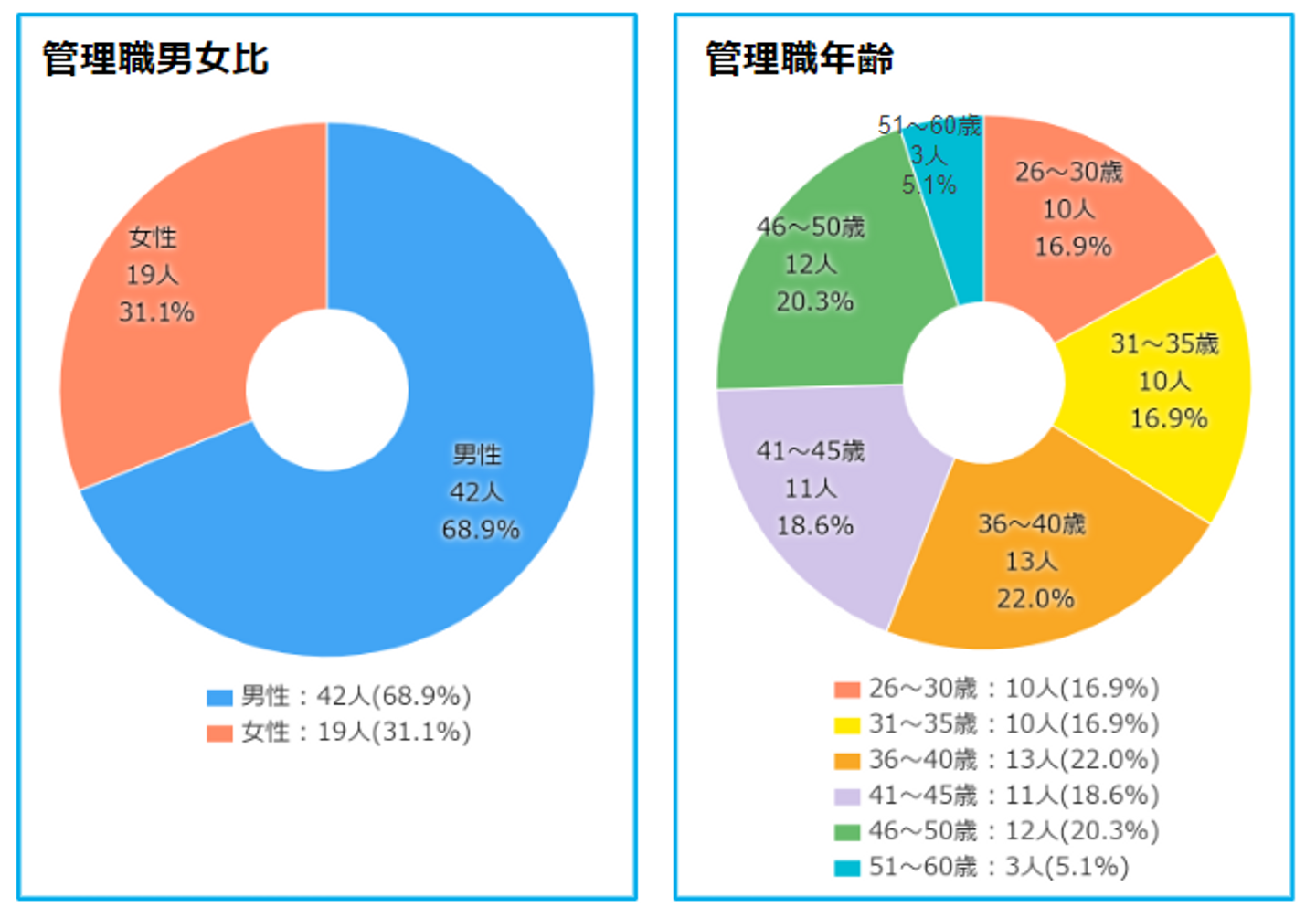 以下は、管理職の男女比と年齢内訳です。