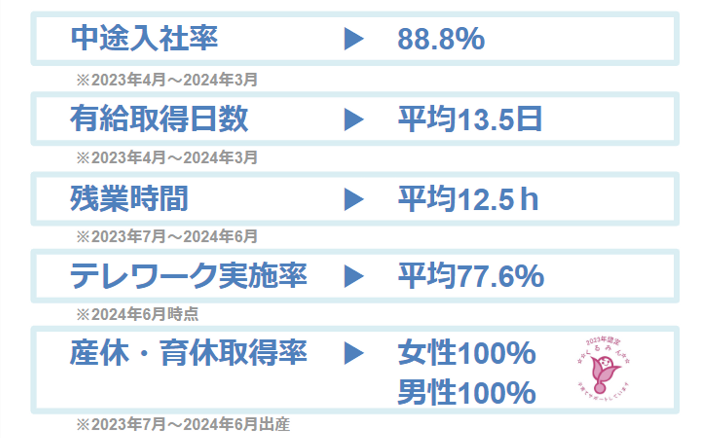 子育てサポート企業としては4度のくるみん認定を受けるなど、育児・介護の両立支援についても積極的に取り組んでおります!