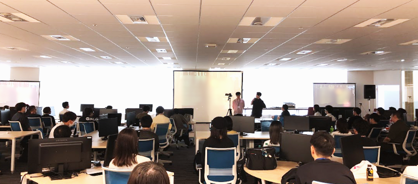 各会社の社員同士同じ場所に集まって同じ状態で話を聞き、顔を合わせて交流できる場をつくれるようにして、会場同士をつなぐリアル×中継、というハイブリッド方式での開催になりました。